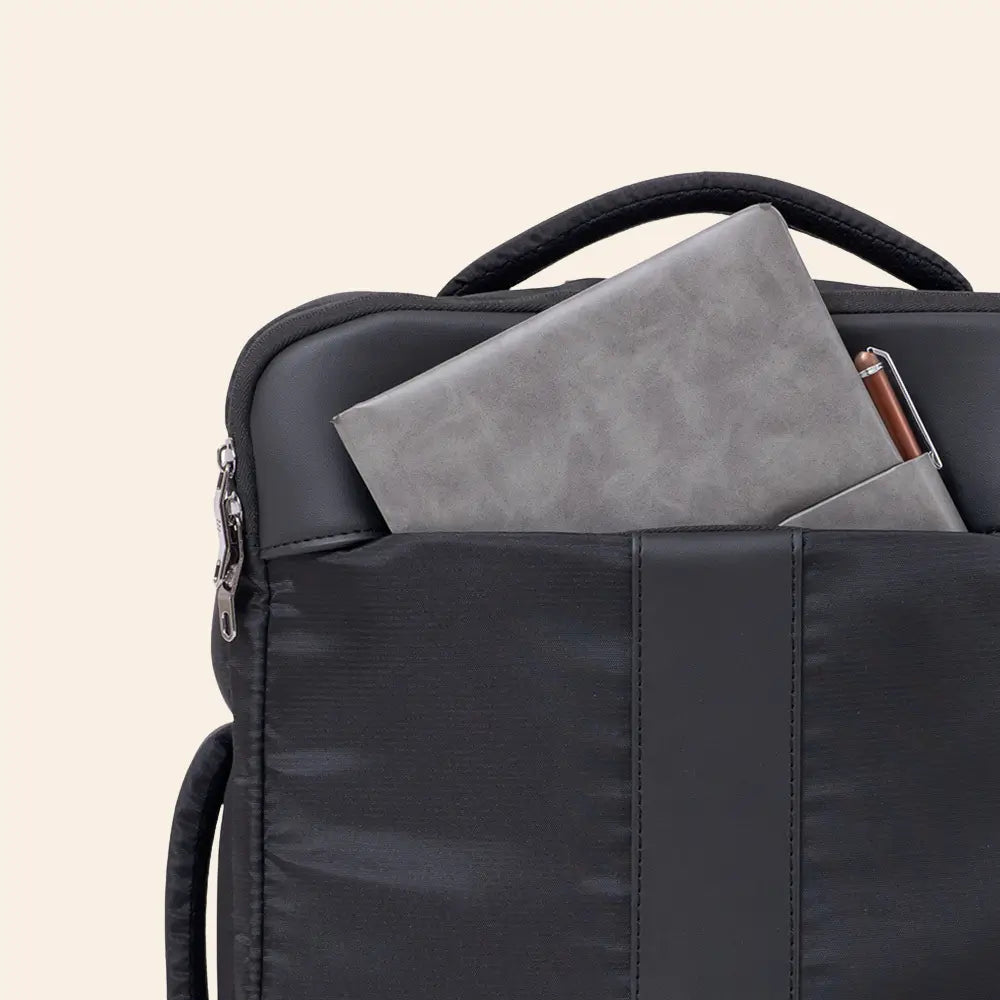 A stylish and sturdy everyday accessory that combines the robustness of polyester with the sophistication of faux leather.